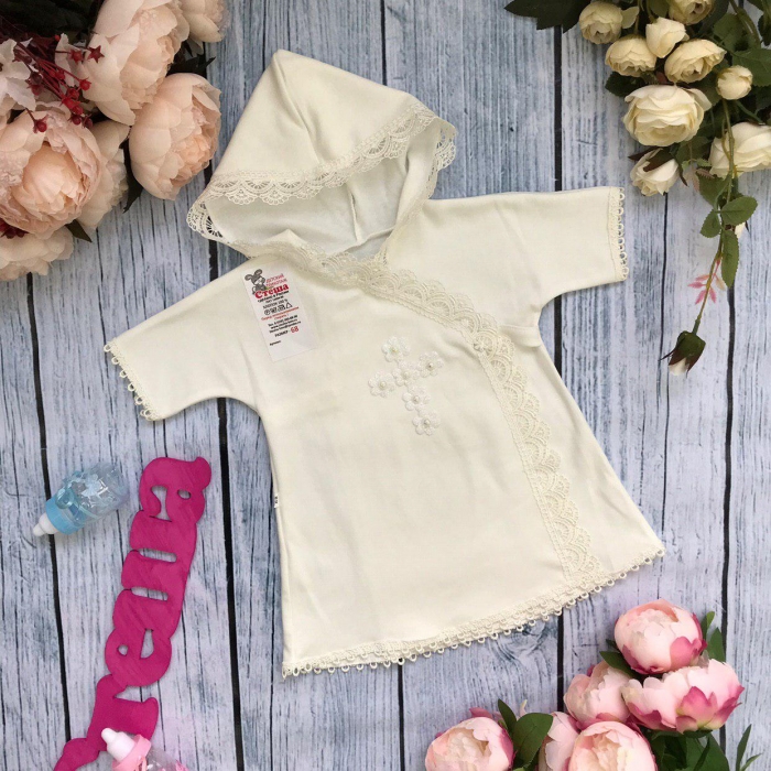 Купить оптом 170. Крестильная рубашка с чепчиком (золото), хлопок 100 % интерлок 62,68,74,80 в Крыму